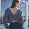 The Adea Knitted Pull is a contemporary knit with a playful twist. Crafted from a soft metallic blend, it features a relaxed fit and cropped length for a modern silhouette. The open back with knot detail adds an unexpected, feminine touch. Wear it with high-waisted trousers or a sleek skirt for an effortlessly elevated look.