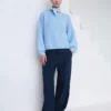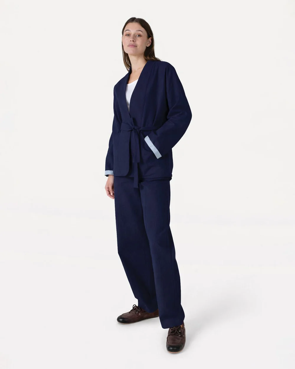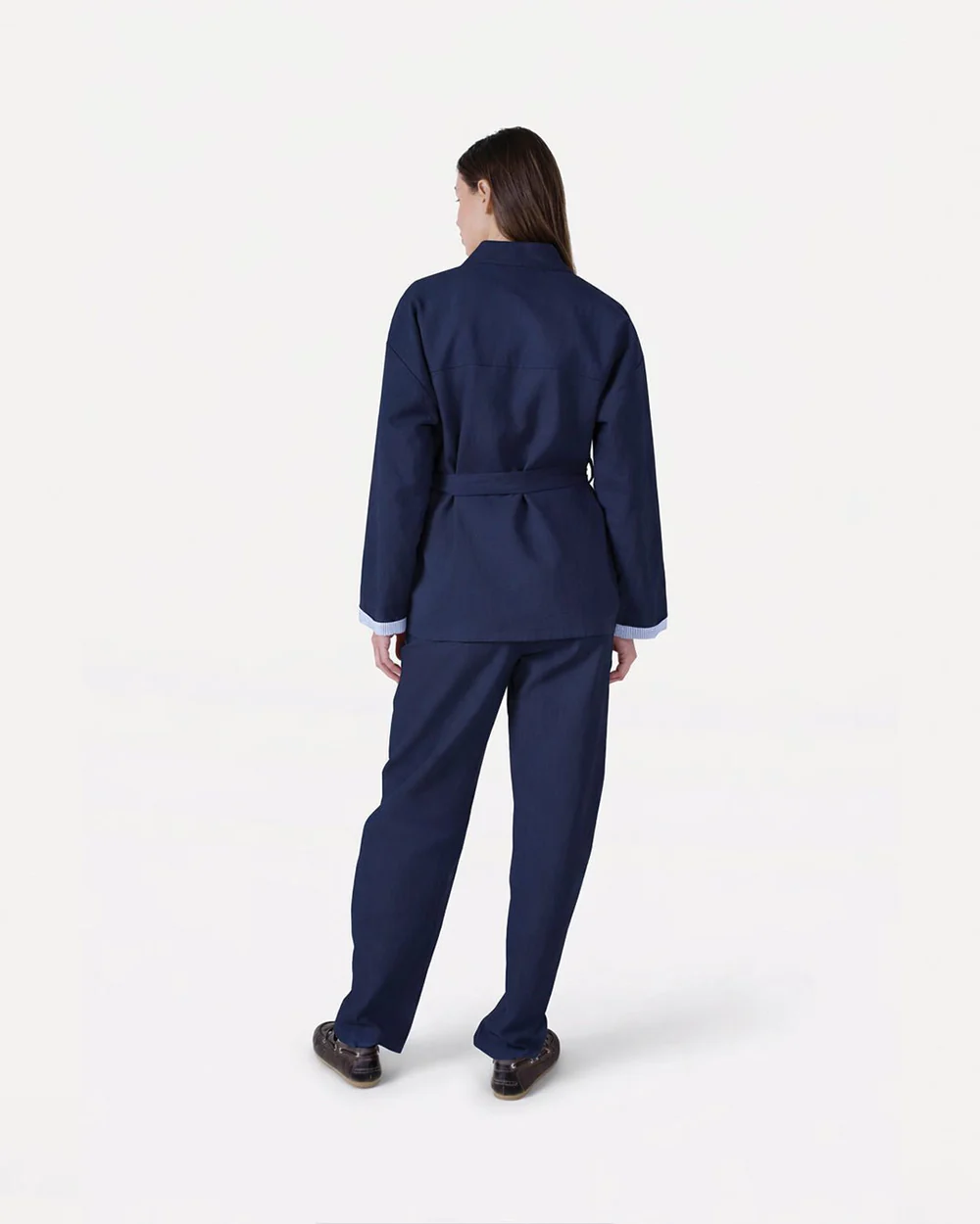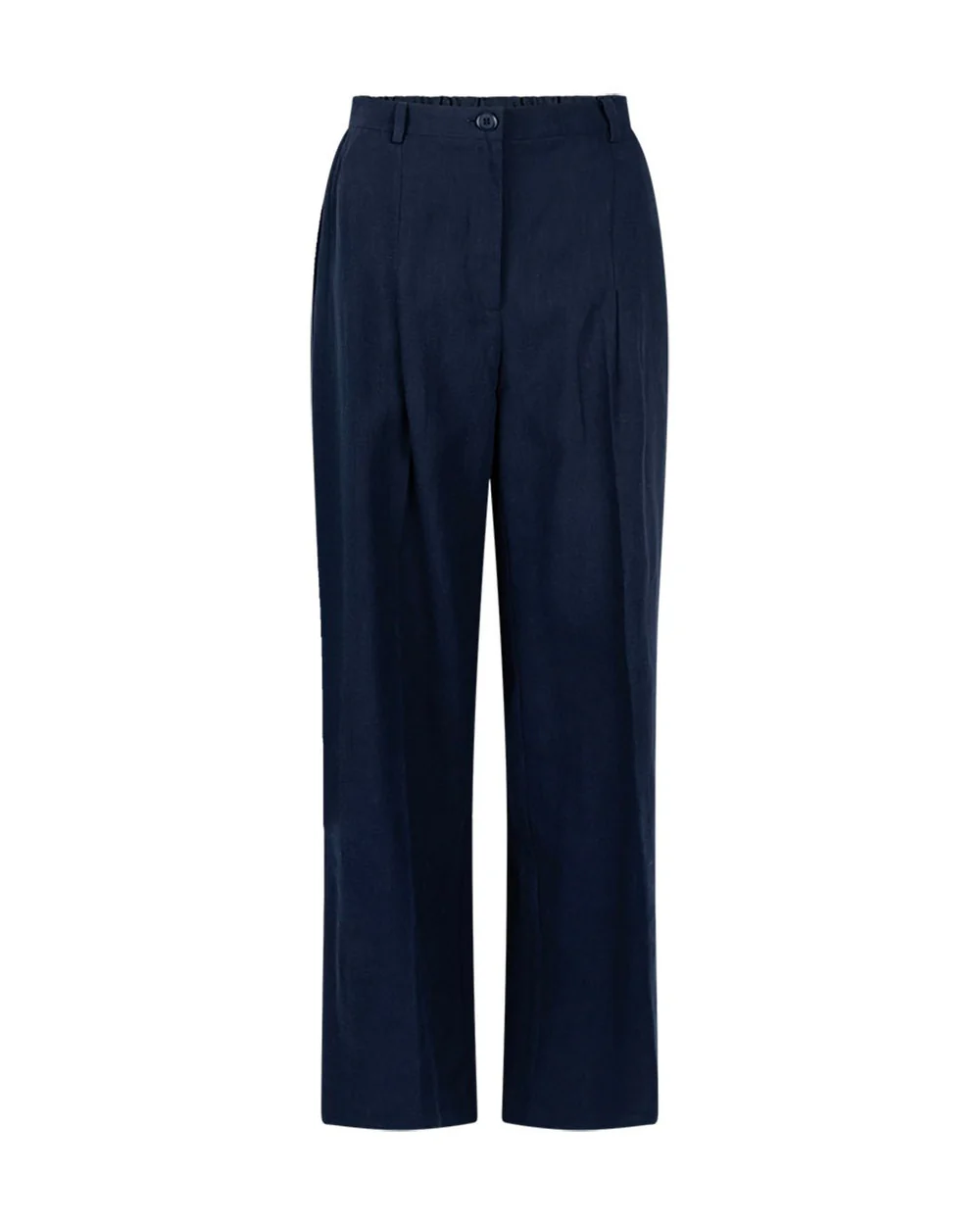 The Emmy pants have a stylish, long cut that drapes over the shoe, giving them a modern look. However, they are easy to shorten if needed. The pant legs have an oversized fit. The pants are designed with a high waist and straight wide legs for a flattering and modern silhouette. The elasticated waist at the back ensures comfort and a perfect fit, while slanted side pockets add practicality. Iron-pressed pleats give the pants a polished finish, and the extra-long legs create a relaxed, stylish look.