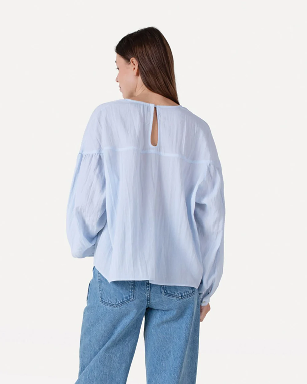 The Florence Top is feminine, soft, and quietly striking. With gathered details at the sleeves and cuffs, it brings a touch of romance to its loose, flowing shape. Finished with a back button closure and subtle yoke detailing. Style tip: Tuck into wide-leg denim or a midi skirt for an effortless, graceful silhouette.