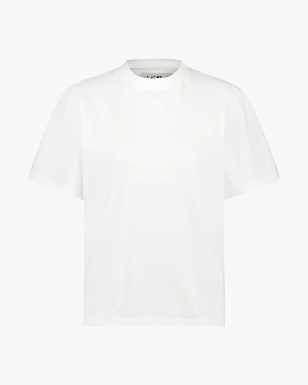 This style is made of organic cotton, which makes this Another Conscious Choice. It has a regular fit, ribbed crew neck and puffed sleeves with pleats at shoulders. Â