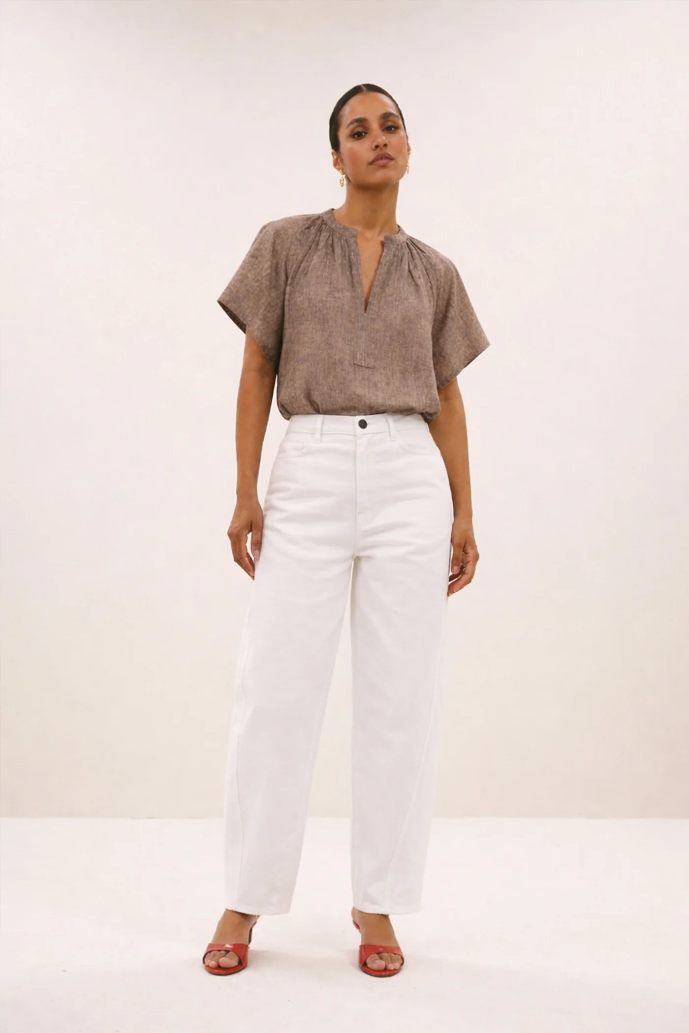 Begum white jeans biedt een comfortabele normale pasvorm en taillehoogte, perfect voor dagelijks gebruik. Met een casual stijl en praktische 5-pocketdetails combineert deze jeans moeiteloos comfort en functionaliteit. De ritssluiting met knoop maakt het aan- en uittrekken eenvoudig, terwijl de enkellange broeklengte zorgt voor een moderne uitstraling.