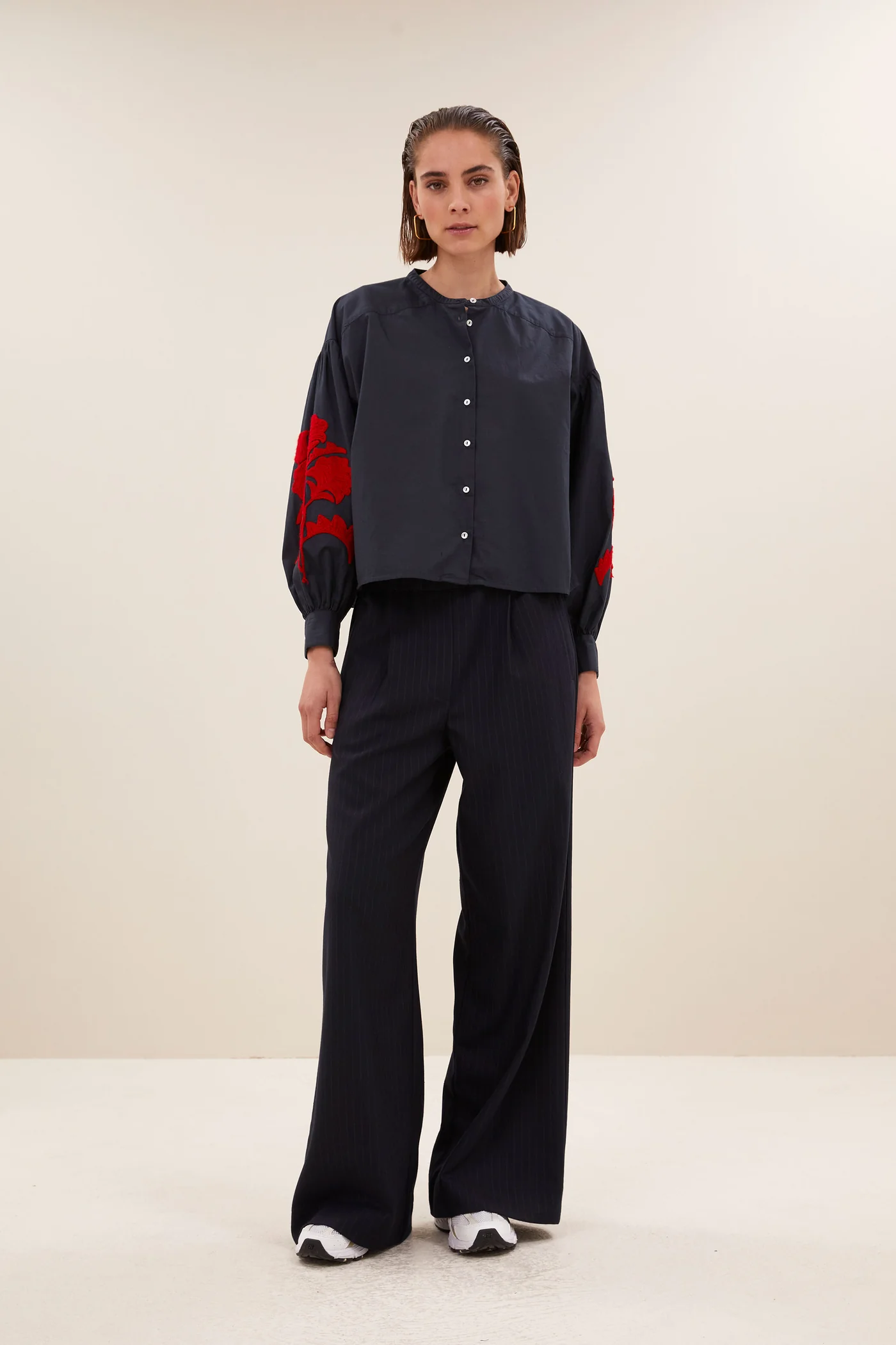 De janet blouse is een casual blouse met een losse pasvorm die comfortabel draagt. De korte fit en lange mouwen maken het een veelzijdige keuze voor elke gelegenheid. De parelmoeren knopen en het subtiele borduurwerk geven een elegante touch. Perfect voor wie stijl en comfort wil combineren met een tijdloze uitstraling.