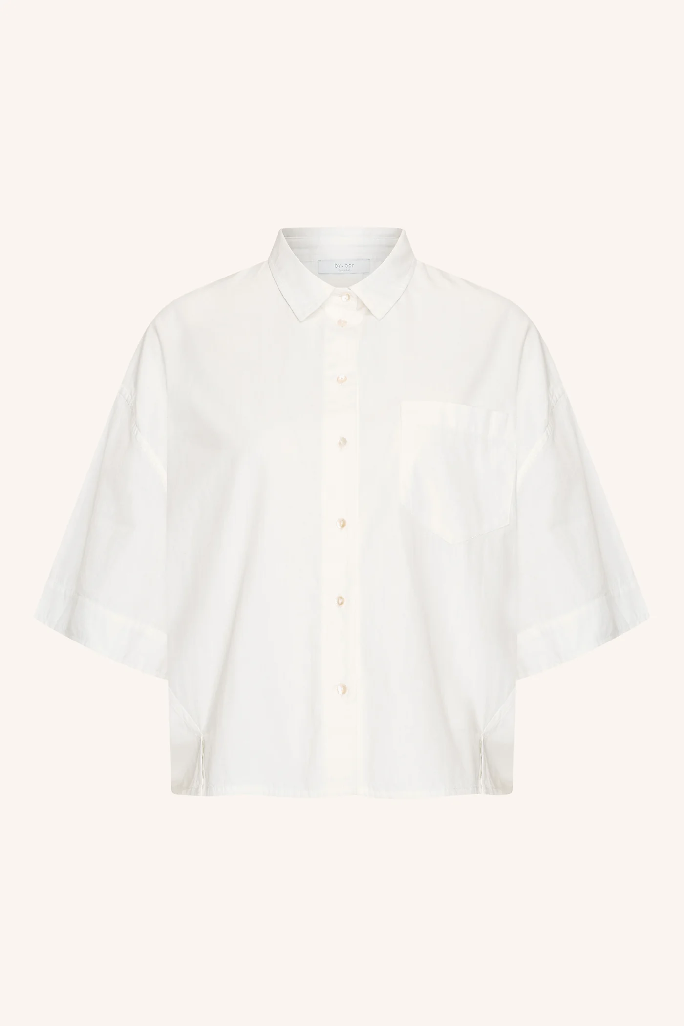 De pilar poplin blouse is een casual blouse met een comfortabele normale pasvorm. Dankzij de knoopsluiting en de klassieke kraag is deze blouse perfect voor een relaxte maar verzorgde look. Met korte mouwen en een tijdloos ontwerp is het een veelzijdige toevoeging aan je garderobe.