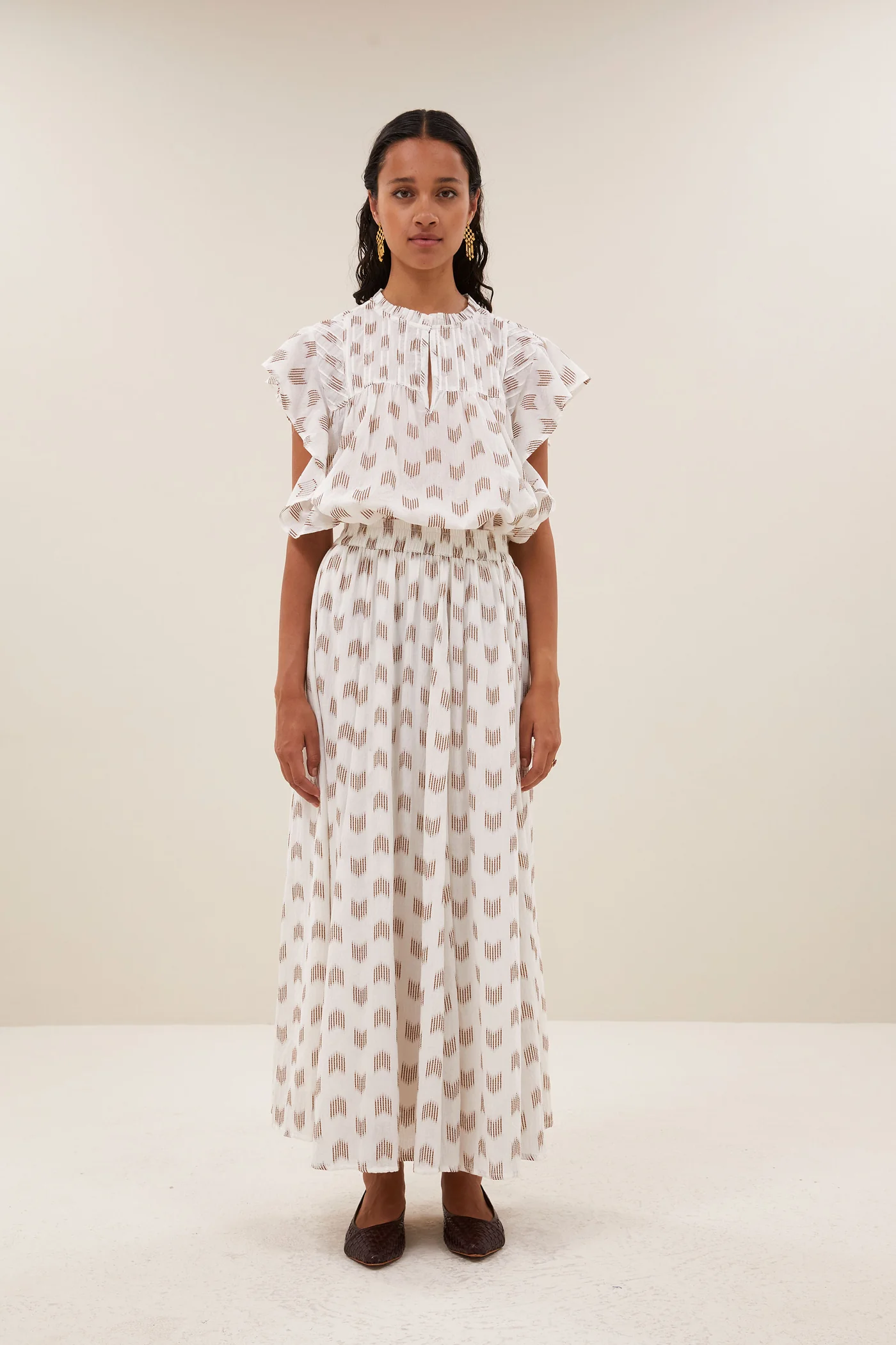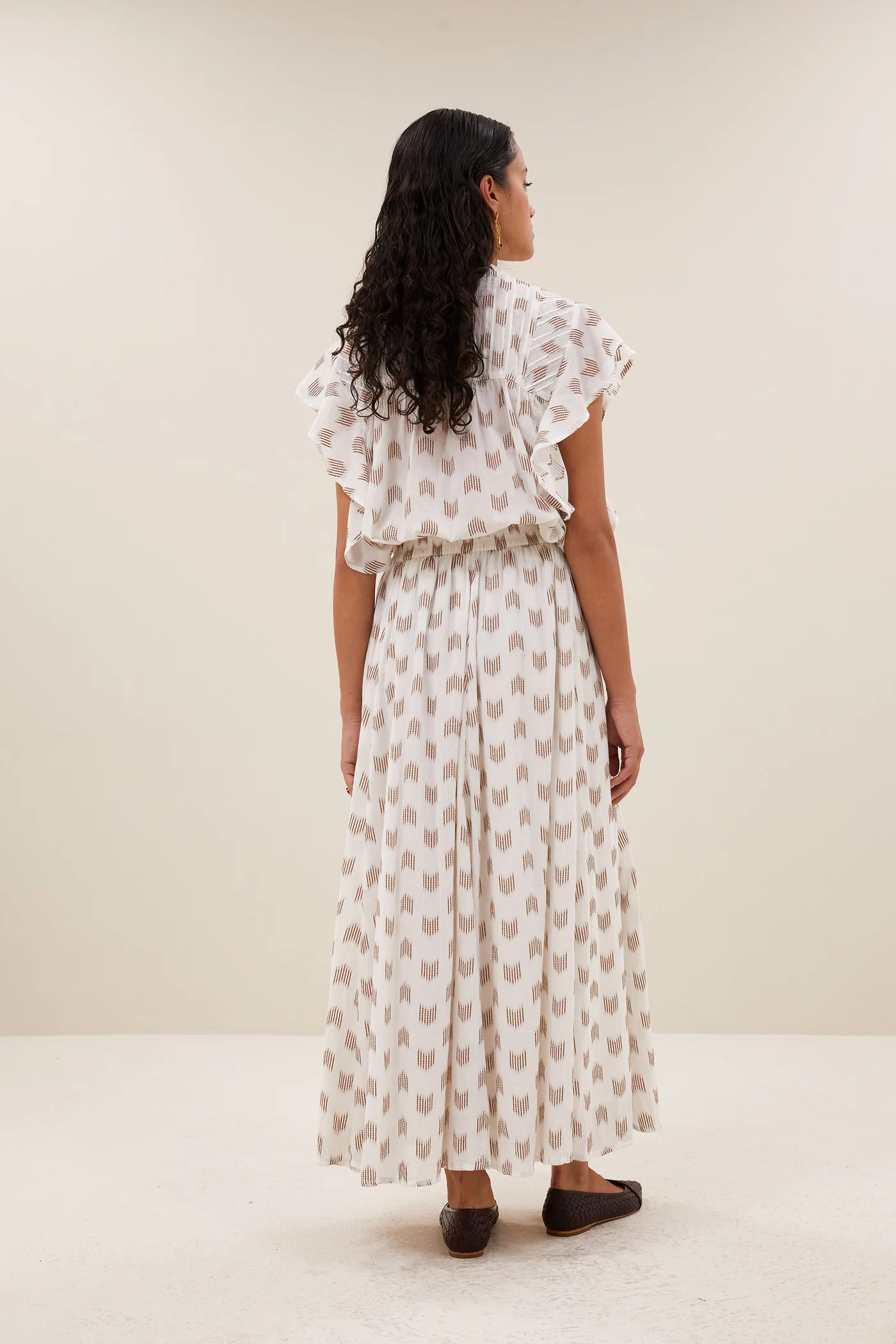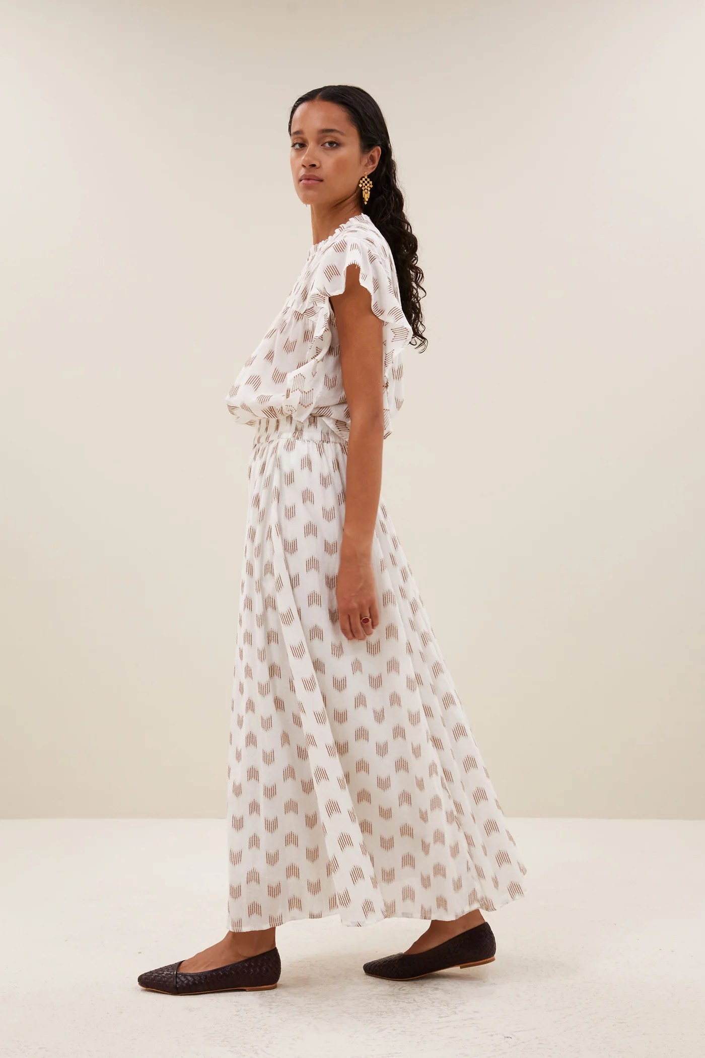 De ruby oase skirt is een lange rok met een losse pasvorm die zorgt voor ultiem draagcomfort. het chique ontwerp met een printpatroon maakt deze rok perfect voor ontspannen dagen en stijlvolle gelegenheden. een veelzijdige toevoeging aan je garderobe die moeiteloos elegantie uitstraalt.