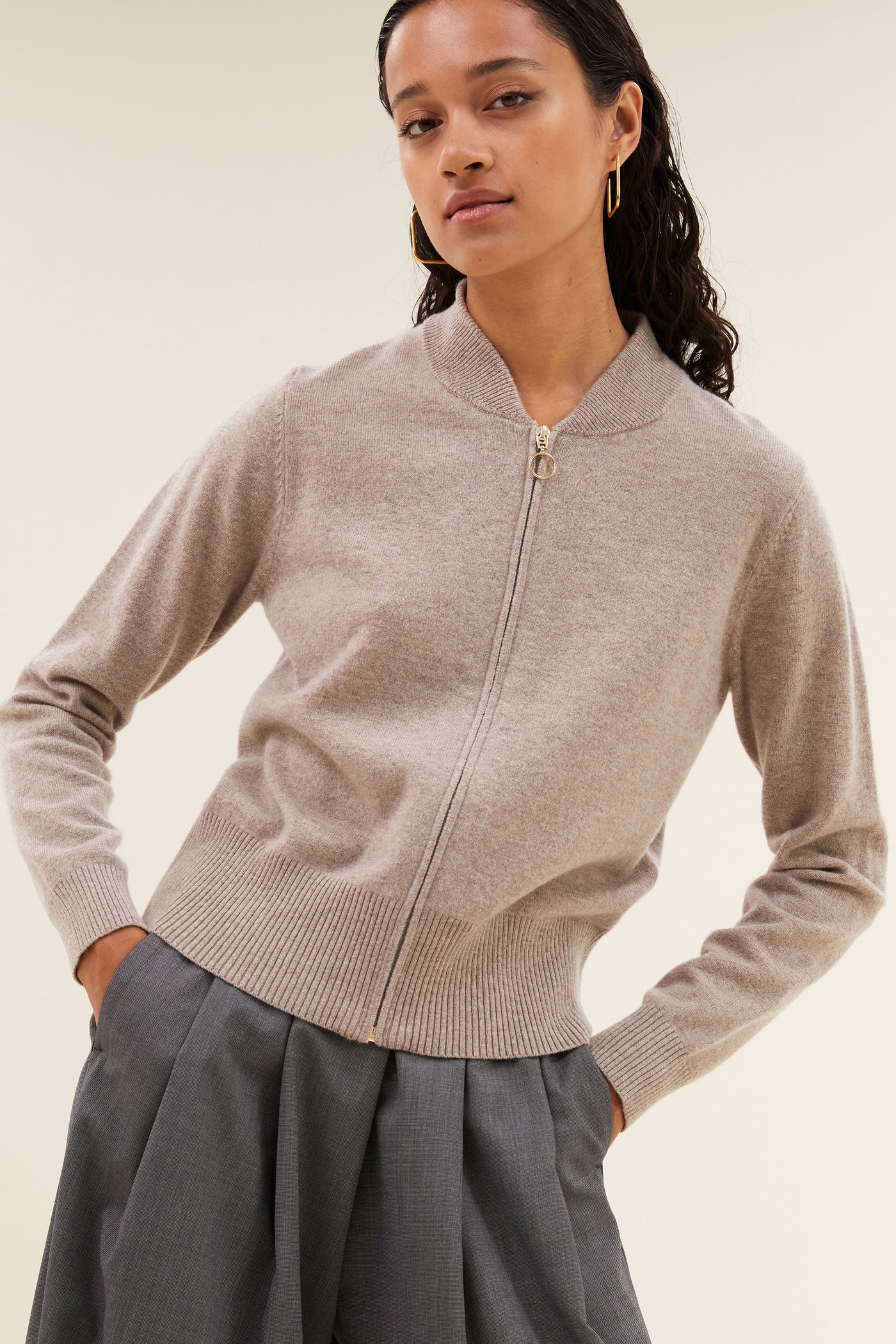 De zipp cardigan, gemaakt van 100% merino wool dat comfortabel aan voelt op de huid. De cardigan heeft lange mouwen en een ritssluiting voor gemakkelijk aan- en uitdoen. De casual fit zorgt voor een tijdloze, veelzijdige uitstraling die moeiteloos te combineren is met verschillende outfits. Comfort en stijl in één.