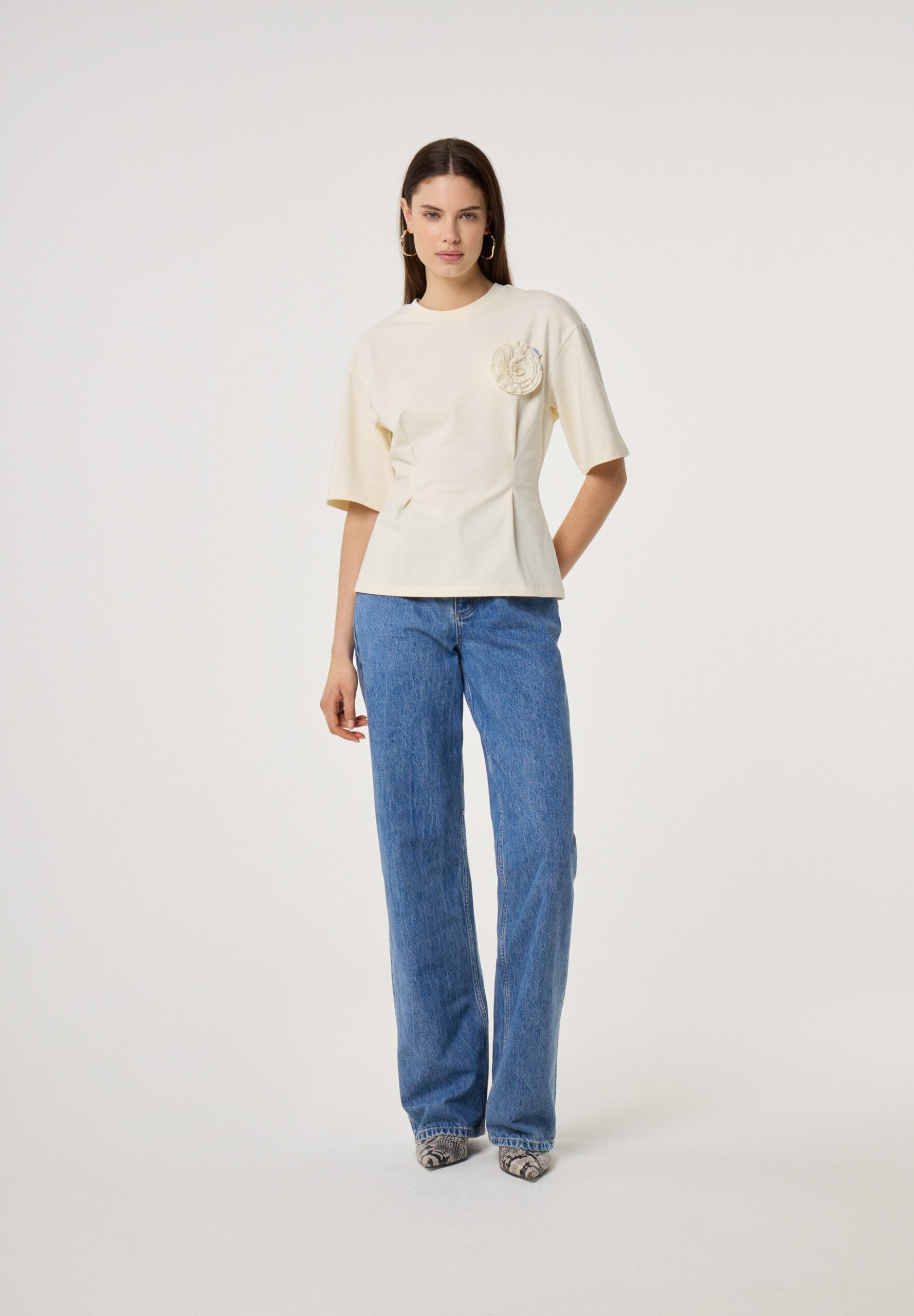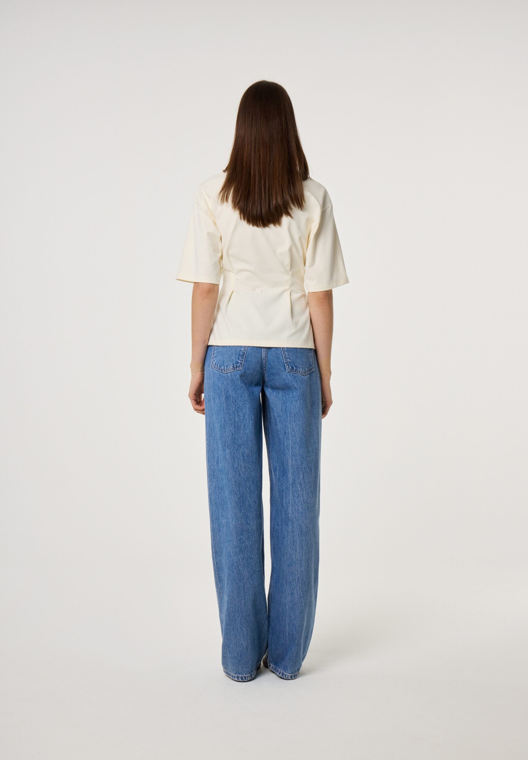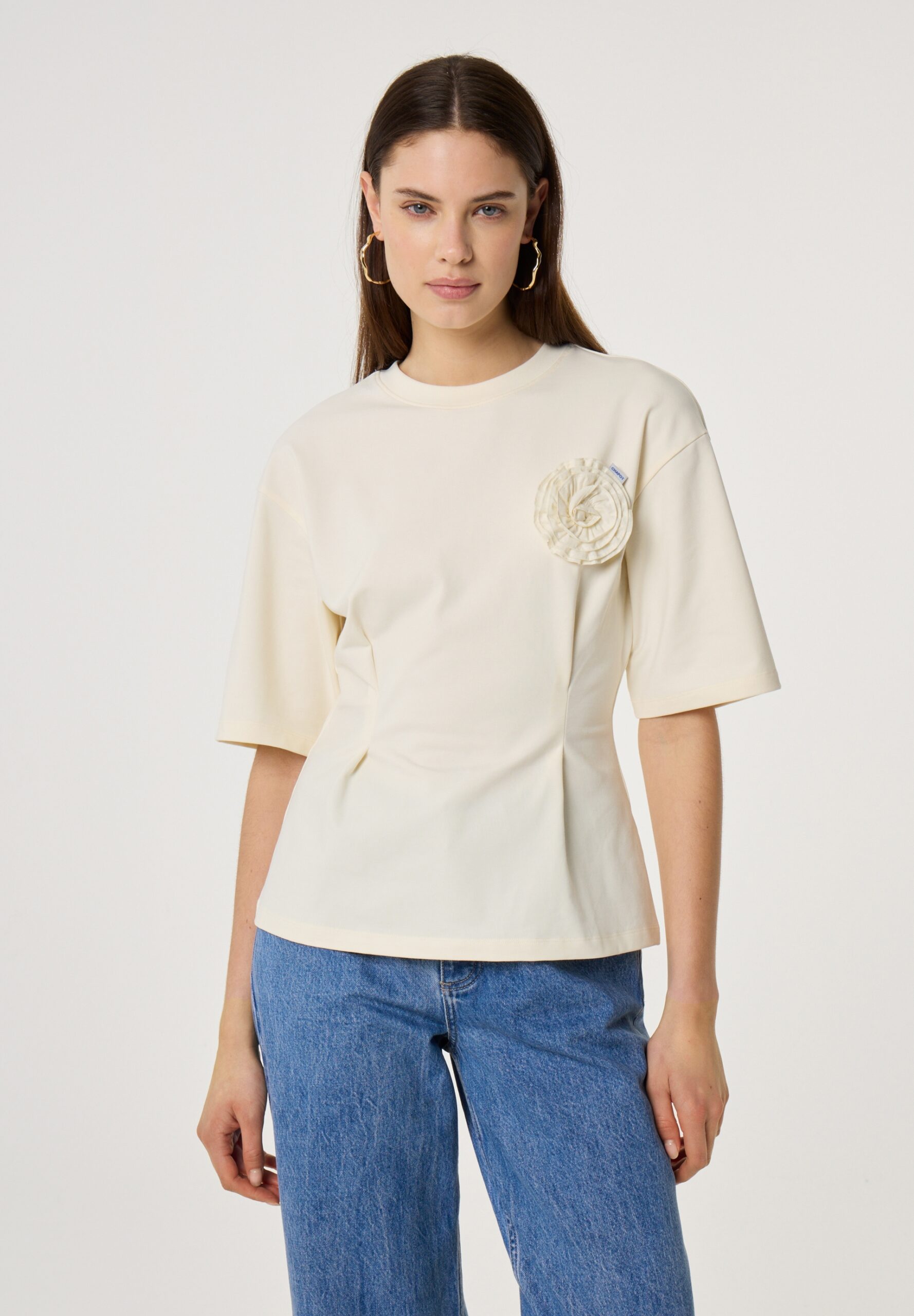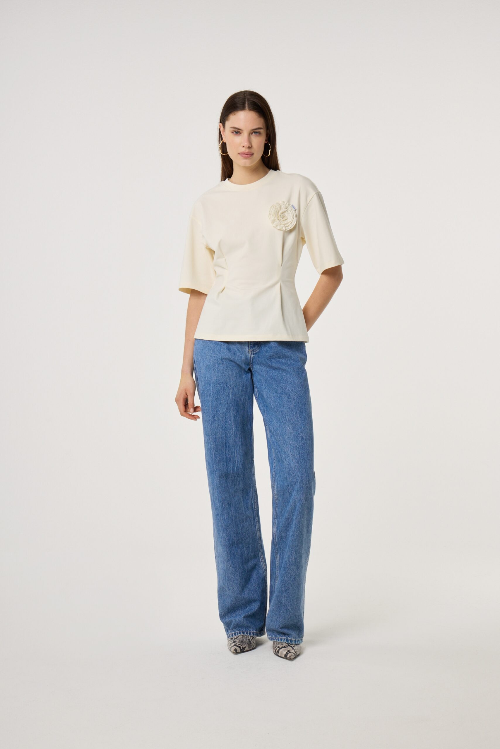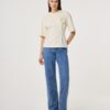 This soft off-white short-sleeve t-shirt features a flattering slim fit for a sleek, effortless look. Crafted from soft, comfortable fabric, it’s perfect for casual days.