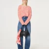 This sweater features horizontal orange stripes with a playful lobster detail at the front. Crafted from 100% organic cotton, it offers a soft, breathable feel and a relaxed, loose fit. Finished with a classic round neck, it’s perfect for casual days or adding a whimsical touch to your everyday wardrobe.