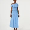 This blue and white striped skirt is crafted from 100% organic cotton for a soft, breathable feel. Designed with a regular fit, it features non-adjustable green ribbons on the sides, finished with delicate bead details for a playful touch. Perfect for sunny days or casual outings.