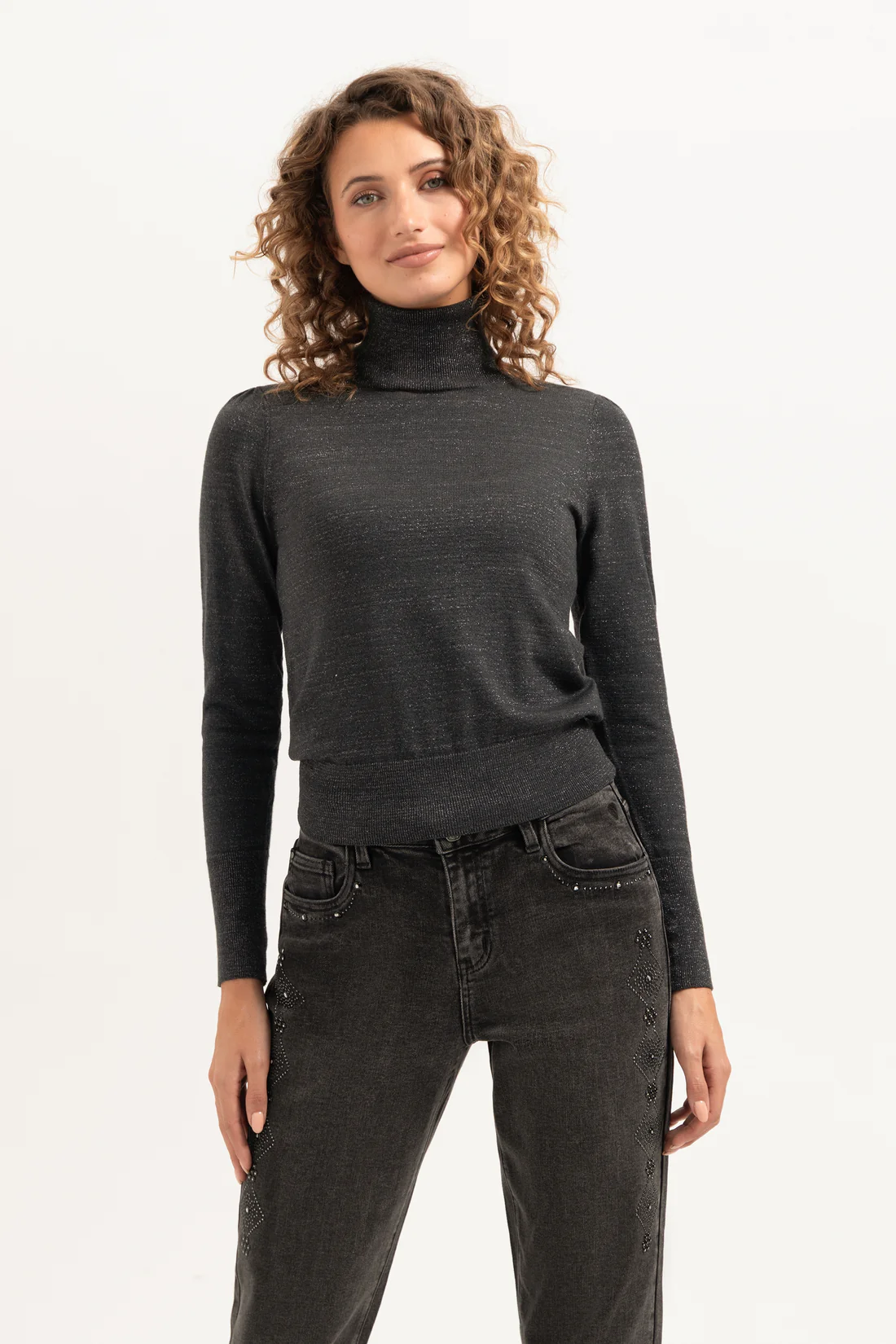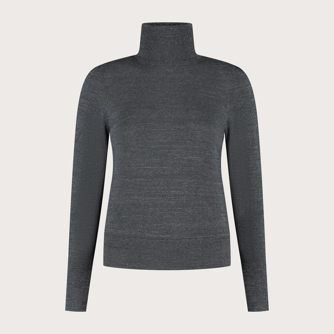 De May Turtleneck is een fijngebreid coltrui met een subtiele glitter in het weefsel, wat zorgt voor een vrouwelijke en elegante uitstraling.