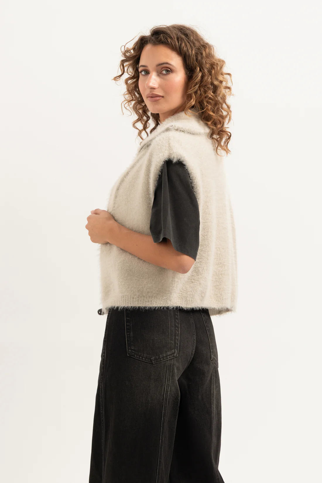 De Poppy Pullover is een heerlijk zacht, mouwloos vest met een hoge sluiting voor extra warmte en comfort. Het vest sluit met een zilverkleurige rits en is perfect voor het creëren van een gelaagde look.