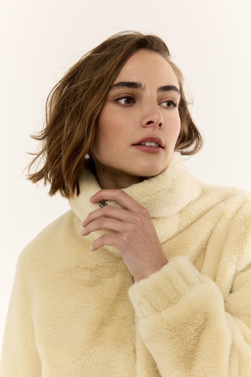 Zacht, stoer en onweerstaanbaar comfortabel Dit teddy-jasje is een echte musthave voor het nieuwe seizoen. De oversized fit en zachte textuur geven elke look een nonchalante, luxe uitstraling — van jeans tot maxi dress. De neutrale beige tint maakt hem eindeloos combineerbaar en perfect voor een layered fall look.