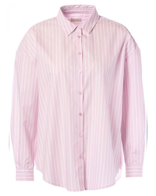 Een tijdloze blouse met een frisse twist. Deze lichtroze blouse met witte streep heeft een losse, vrouwelijke pasvorm en is gemaakt van een luchtige katoenmix. Dankzij de klassieke kraag en afgeronde zoom draag je haar zowel casual op jeans als chic in een pantalon.