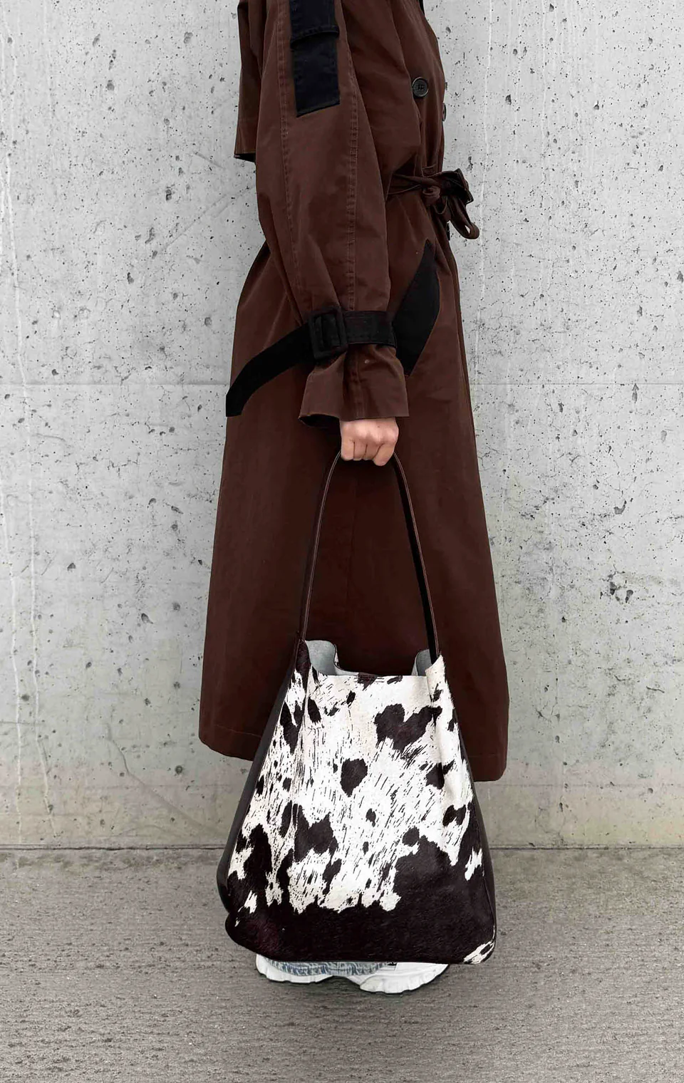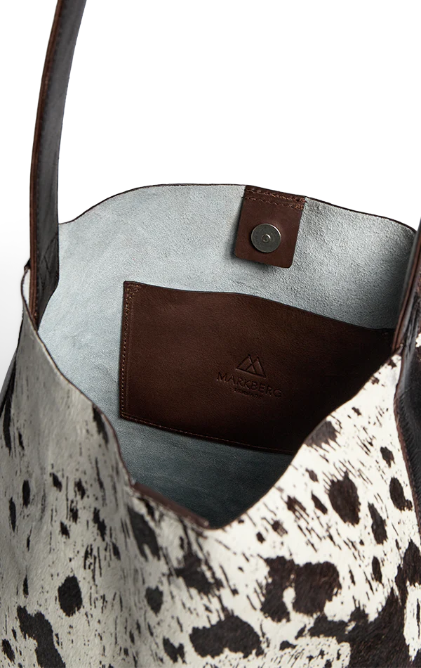 The COW collection is designed focusing on aesthetics and functionality. The leather is strategically placed on areas like the base, sides, and handle to ensure practical use. This helps keep your bag looking beautiful, even with daily use.