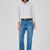 Dit damesoverhemd heeft een cropped, rechte pasvorm en lange mouwen. De klassieke kraag en knoopsluiting maken het veelzijdig voor elke gelegenheid. Subtiele borstzak als detail.
