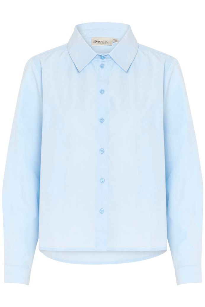 THE SHIRT is a crisp button-up shirt and features a structured collar, long sleeves, and a cropped hemline for a modern silhouette. Its tailored fit and clean finish offer a refined yet casual look for everyday or office wear.