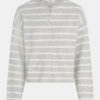grijs/ivoor gestreept vestje met ronde kraag, lange mouw en knoopsluiting