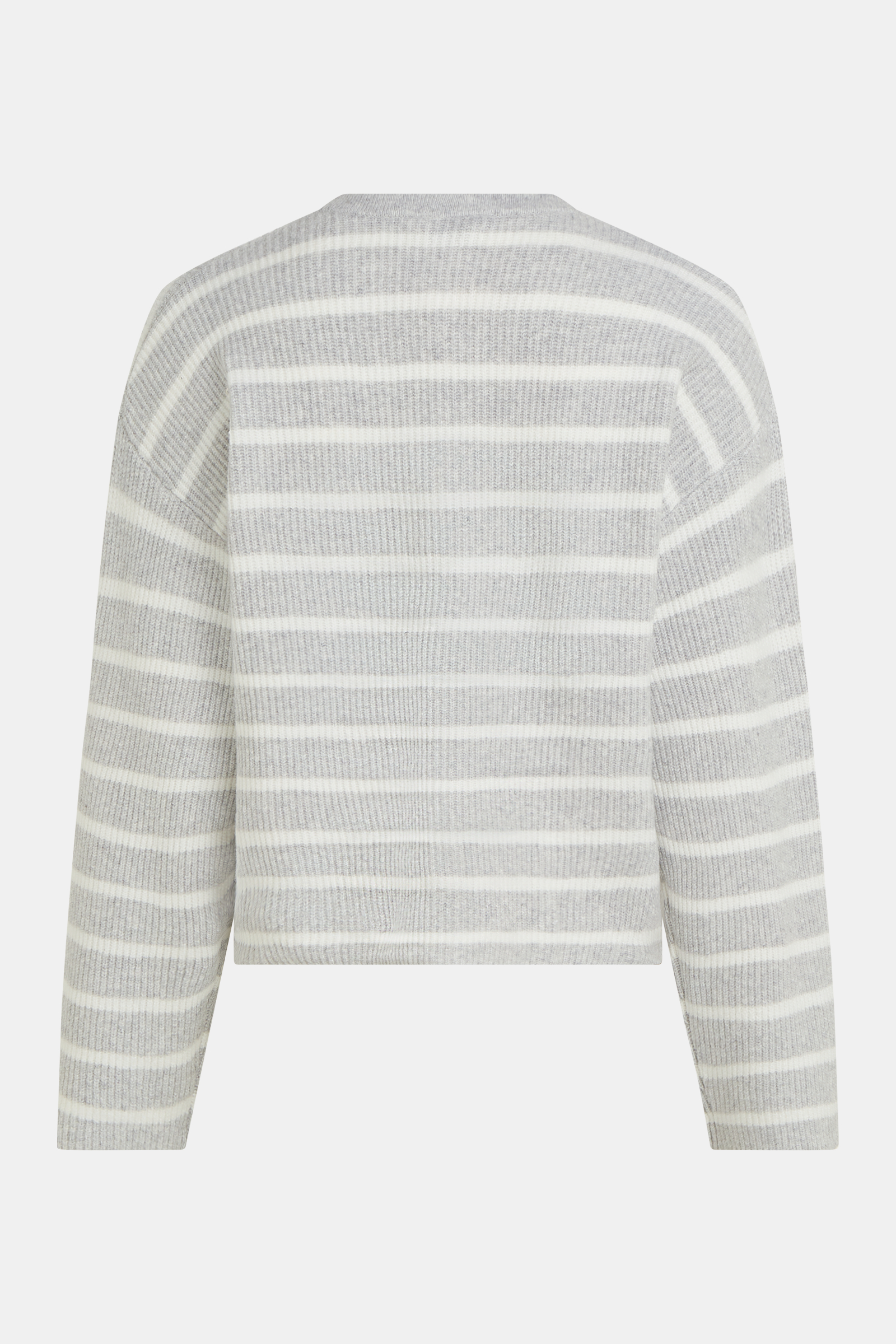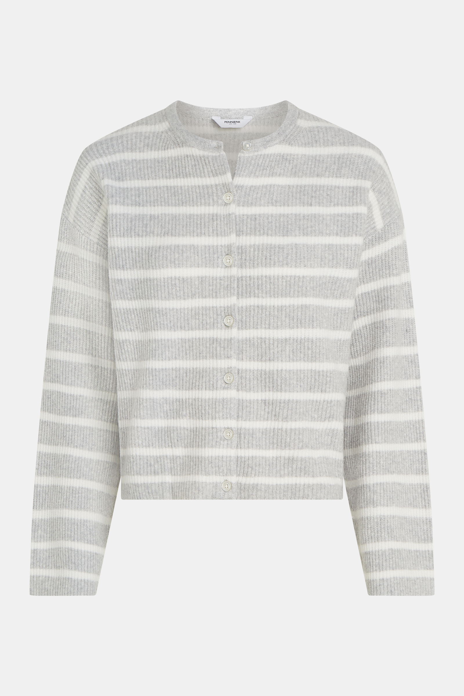 Penn&Ink S26B390 cardigan stripe grey melange/ecru