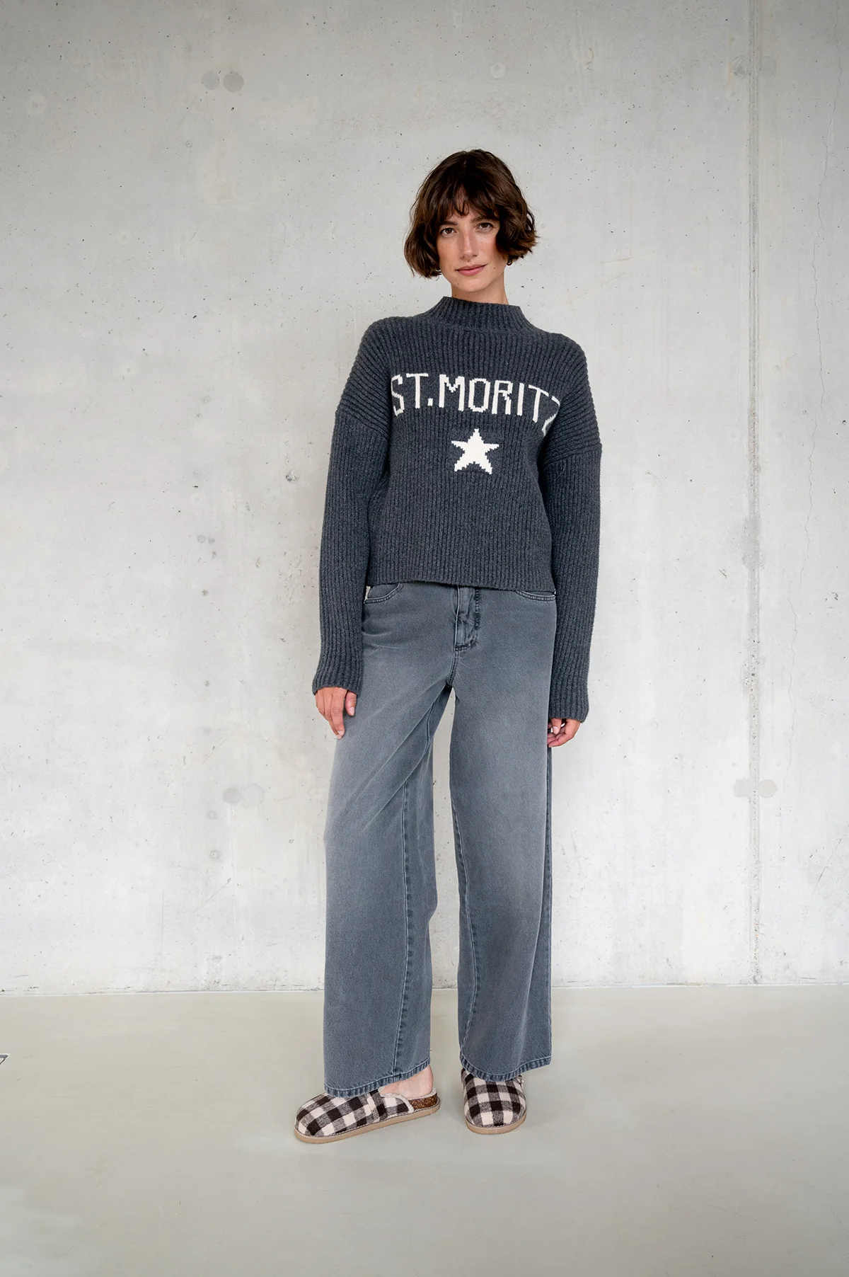 This printed jumper is made for ultimate comfort with a high round neckline. Whether you’re gearing up for a ski trip or just lounging around, it’s your perfect cozy companion with a playful edge.