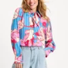 Deze blouse met blauwe strepen en roze-rode bloemenprint brengt direct energie in je outfit. De afneembare strik bij de halslijn geeft een vrouwelijke touch. De soepele LENZINGâ„¢ ECOVEROâ„¢ viscose geven de blouse een zachte en comfortabele handfeel.