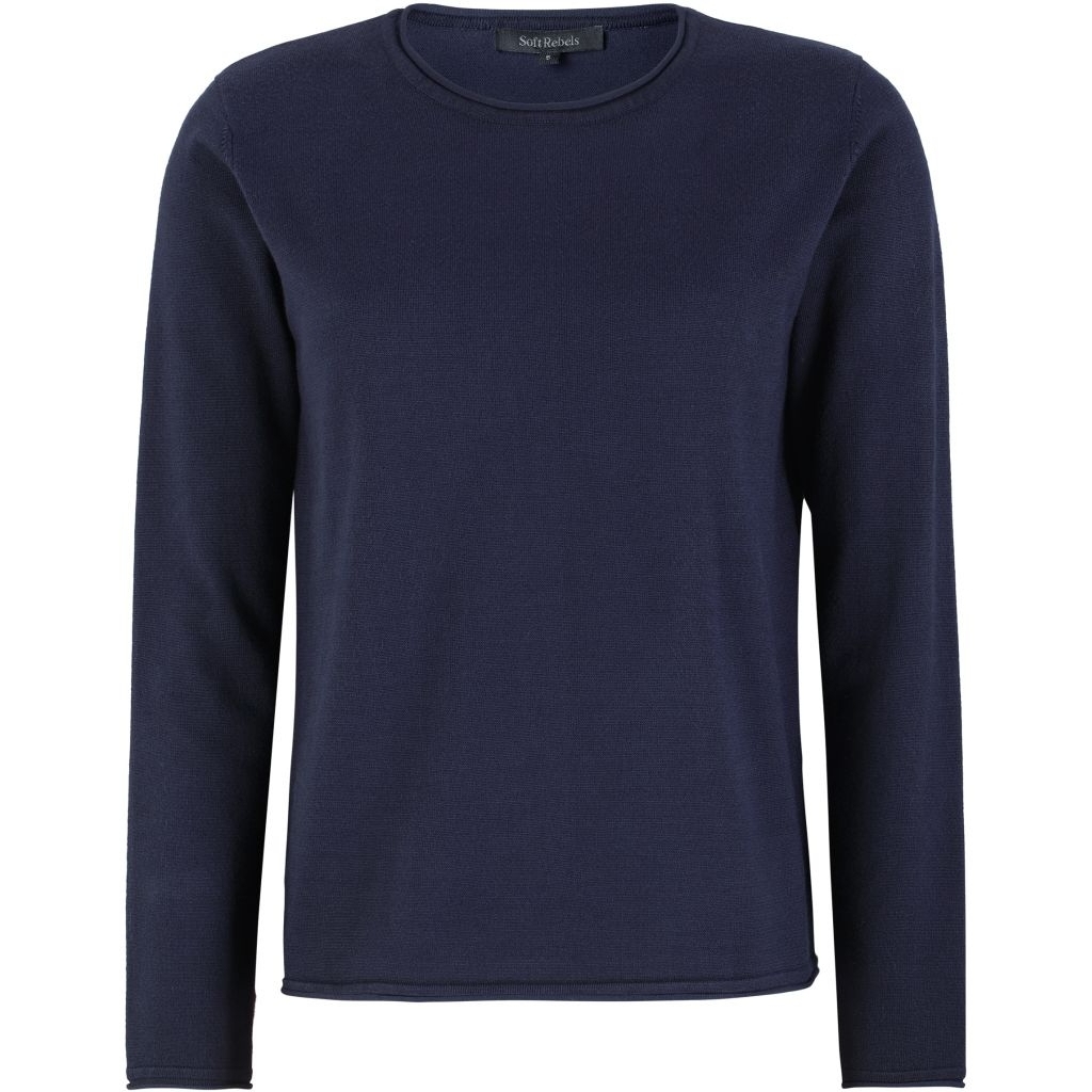 Soft Rebels 219-208 Marla o-neck roll edge knit total eclipse