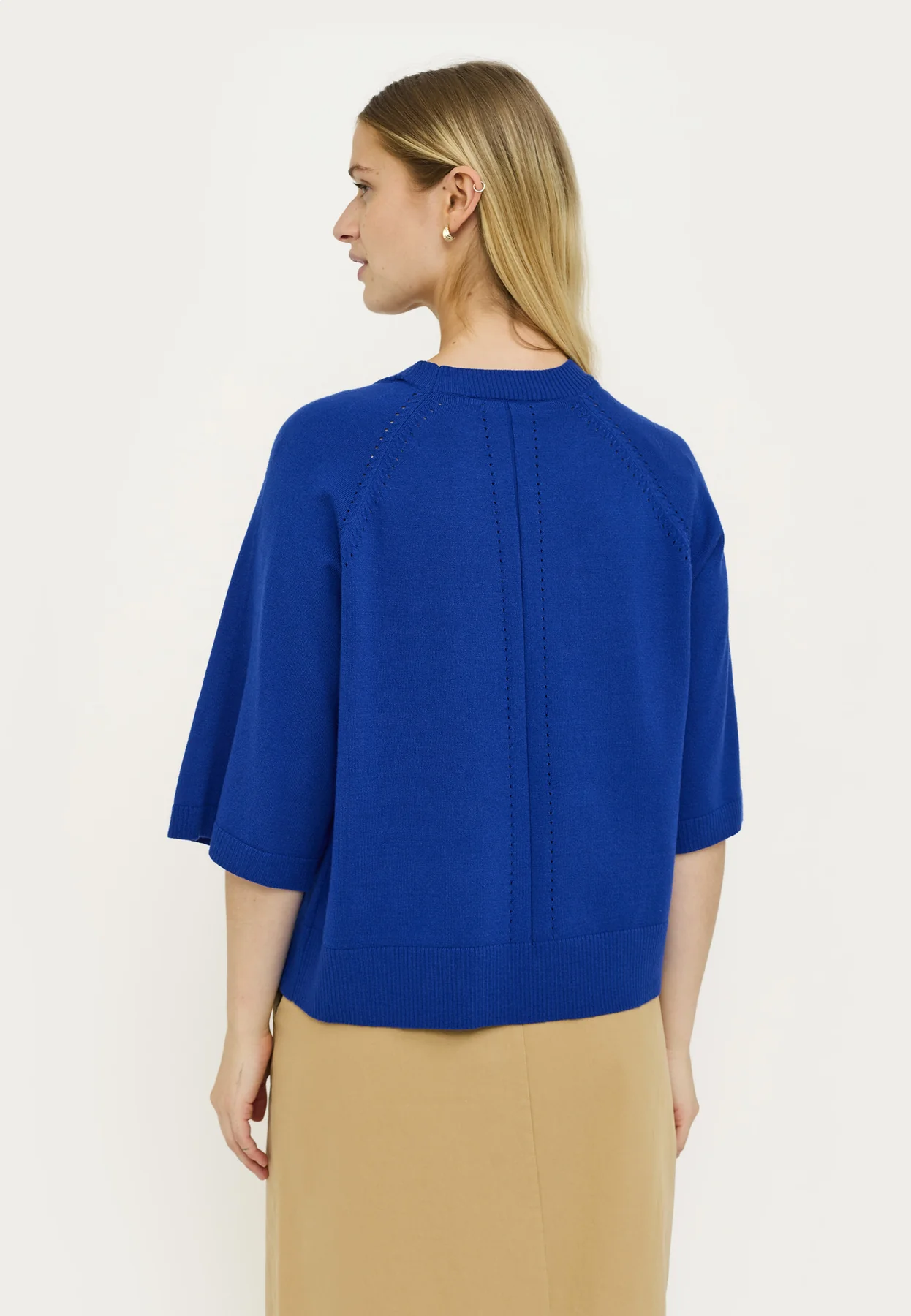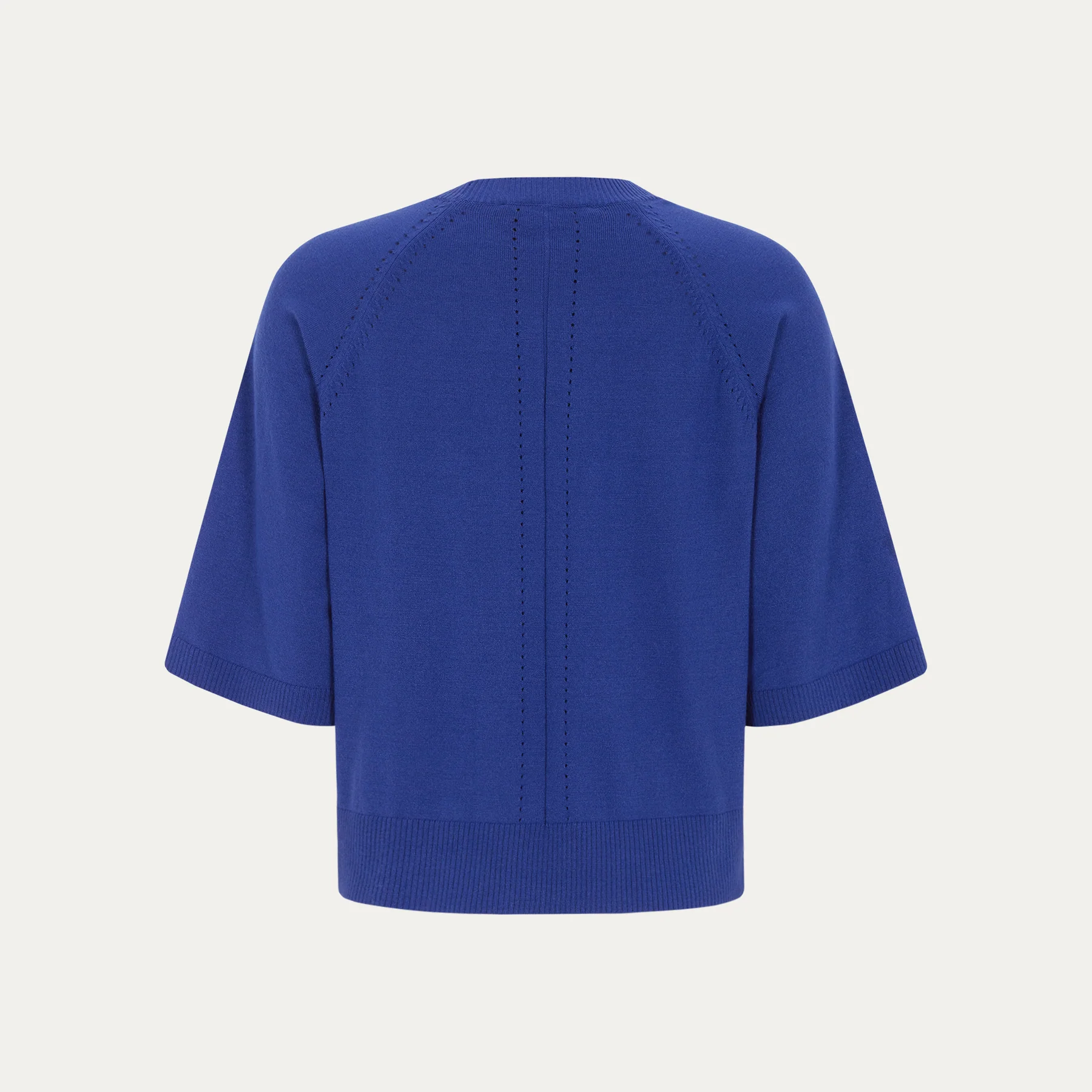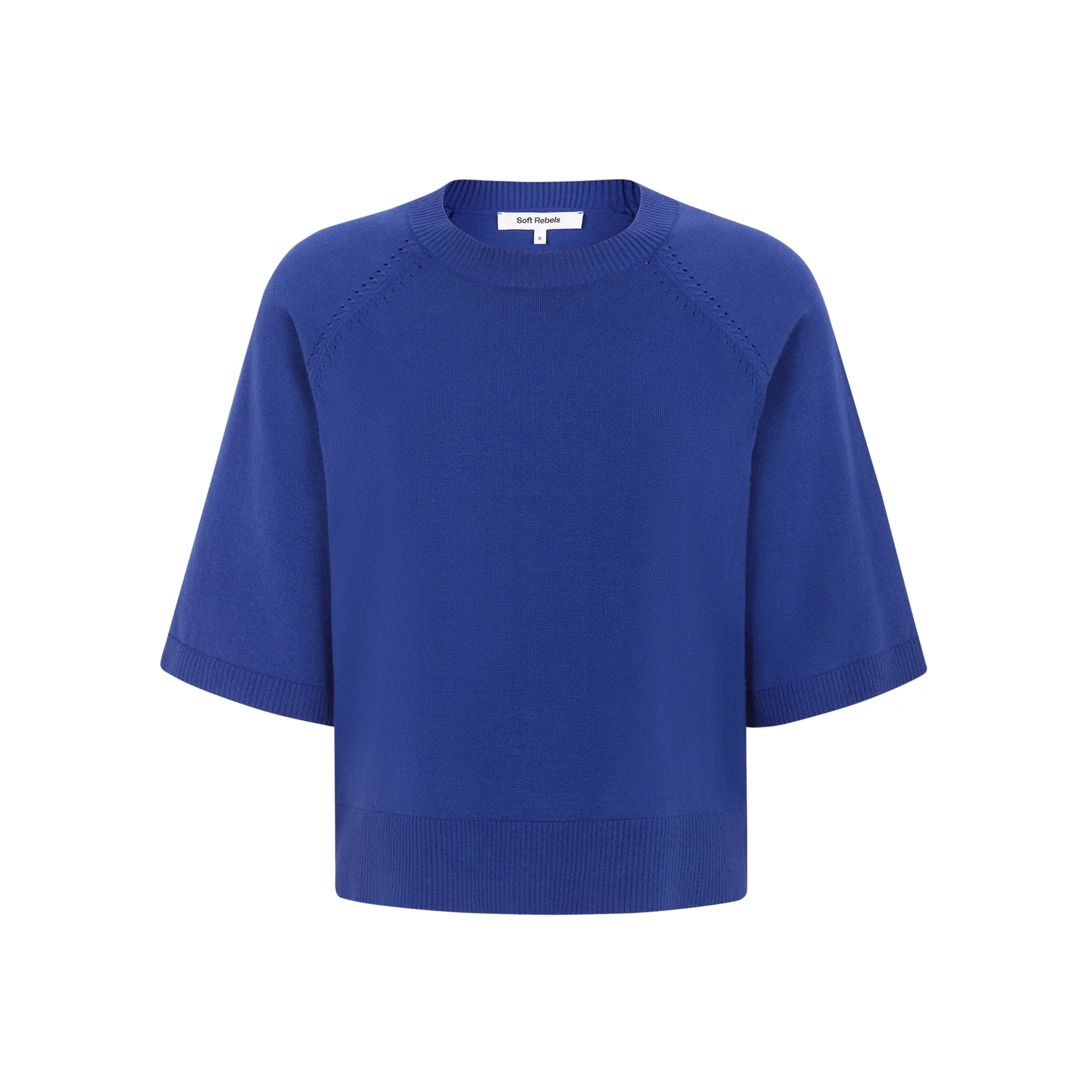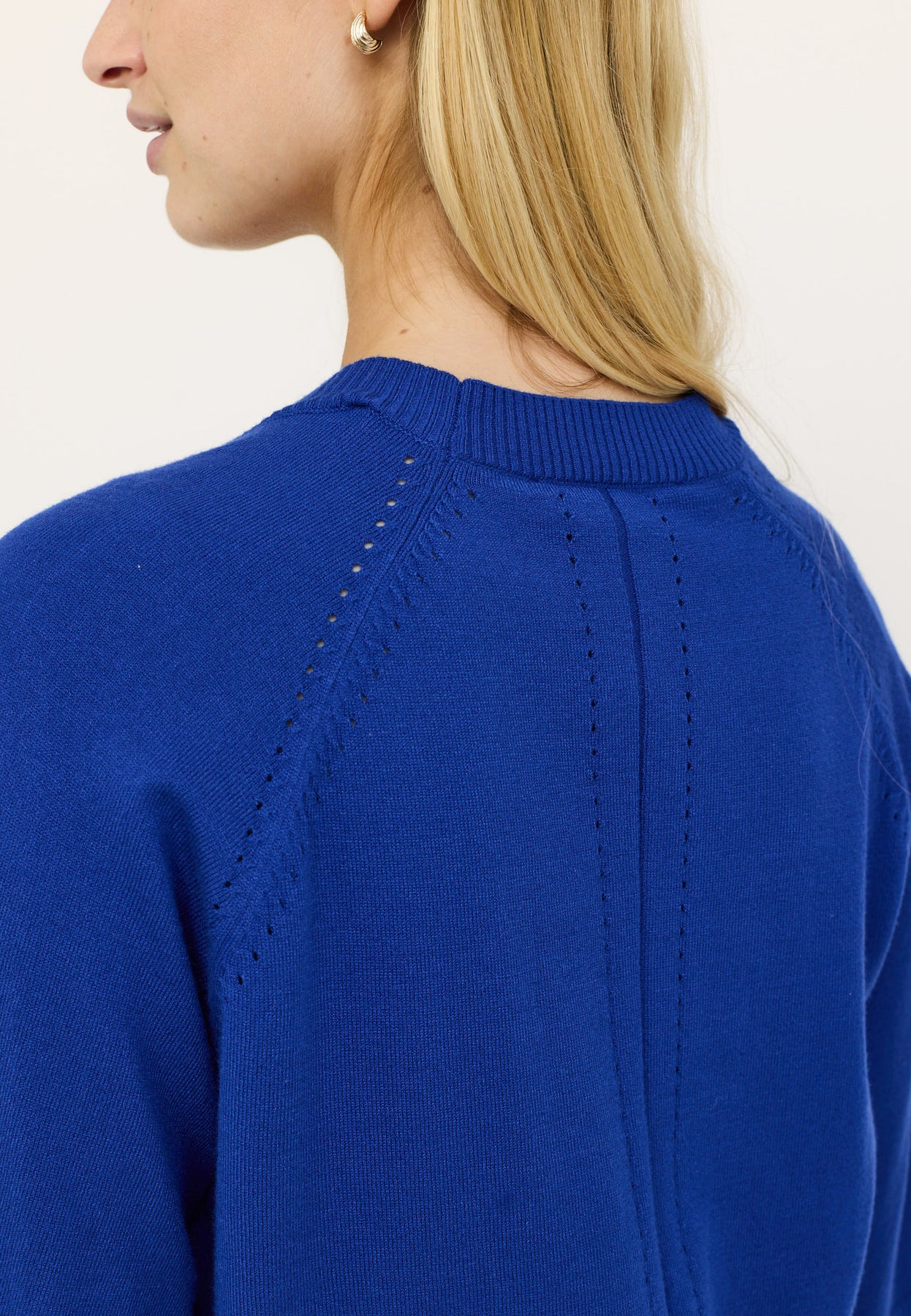 Kobaltblauw wijd vallend truitje met ronde hals en raglanmouw.