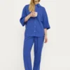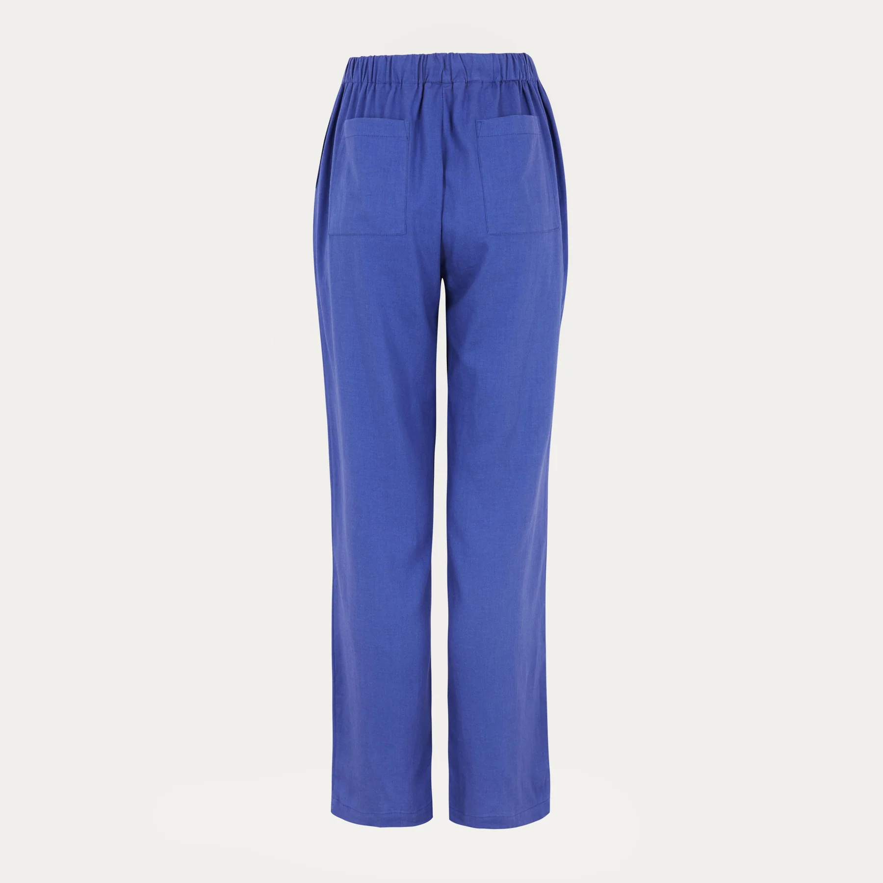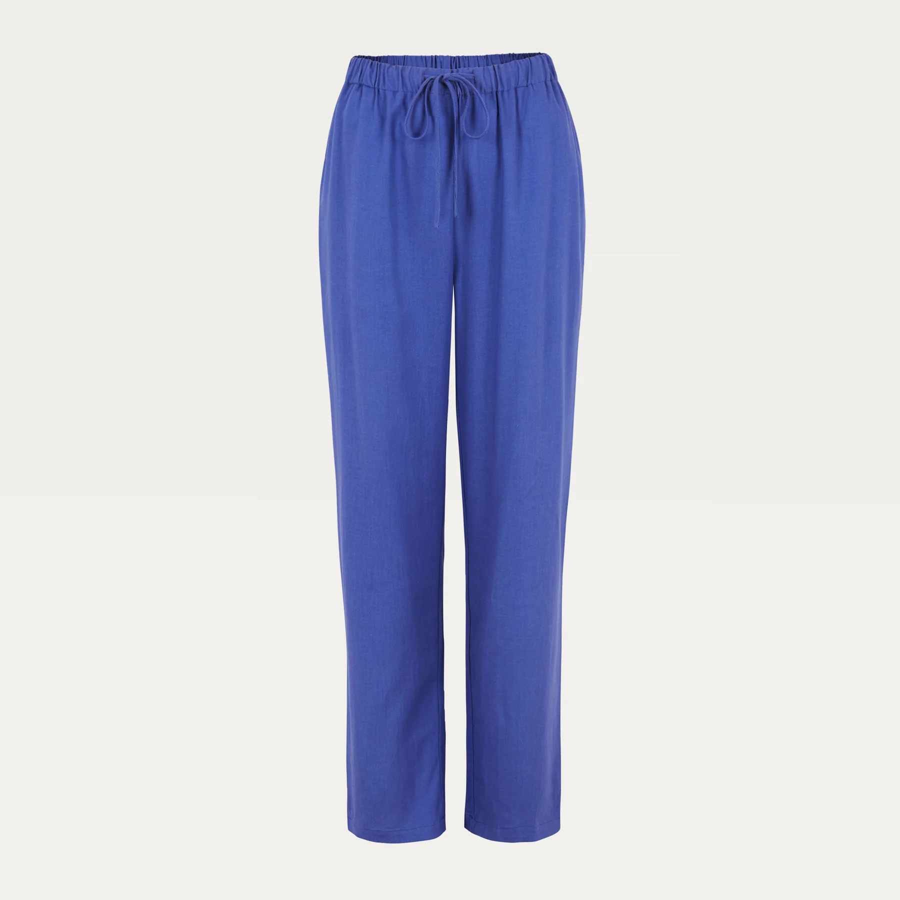 Soepelvallende kobaltblauwe pantalon met koord en steekzakken.