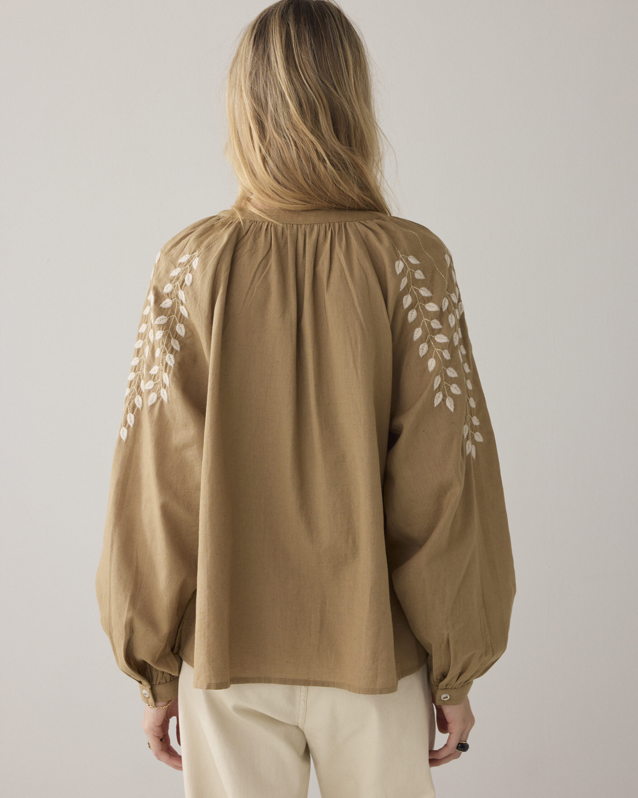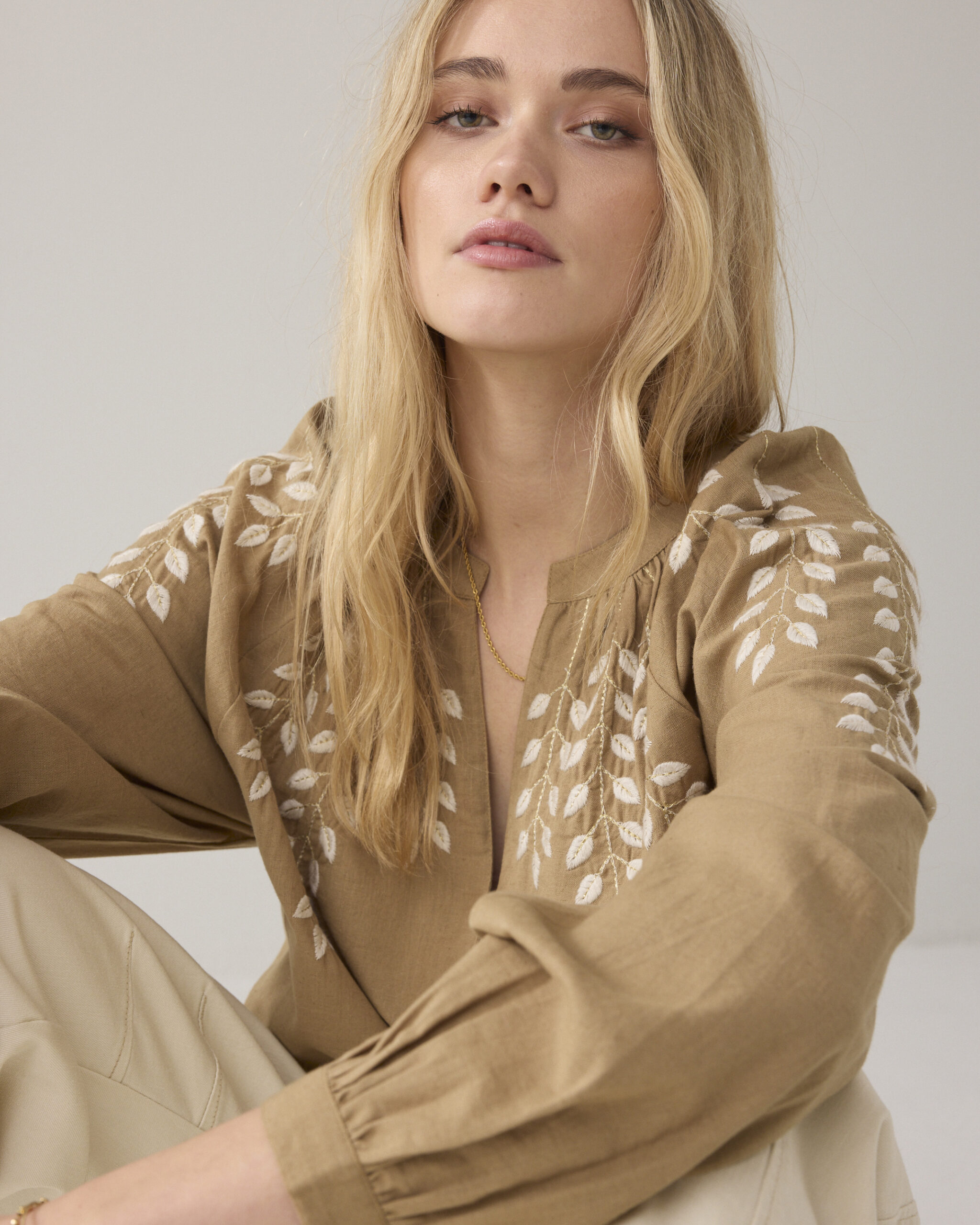 Summum blouse met borduursel – zand