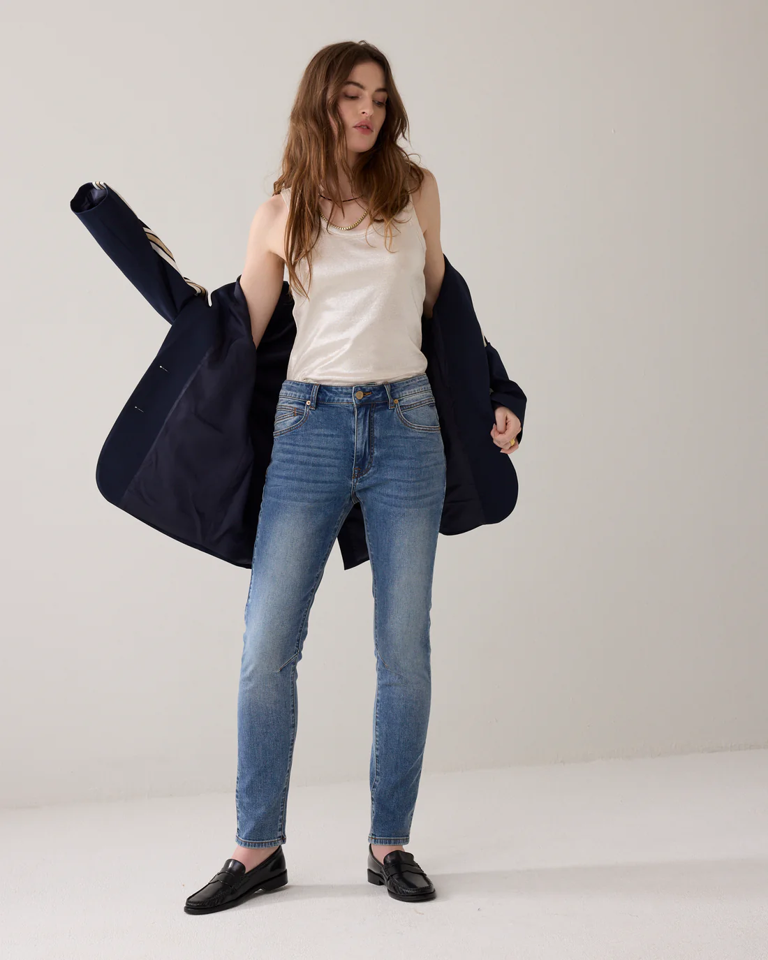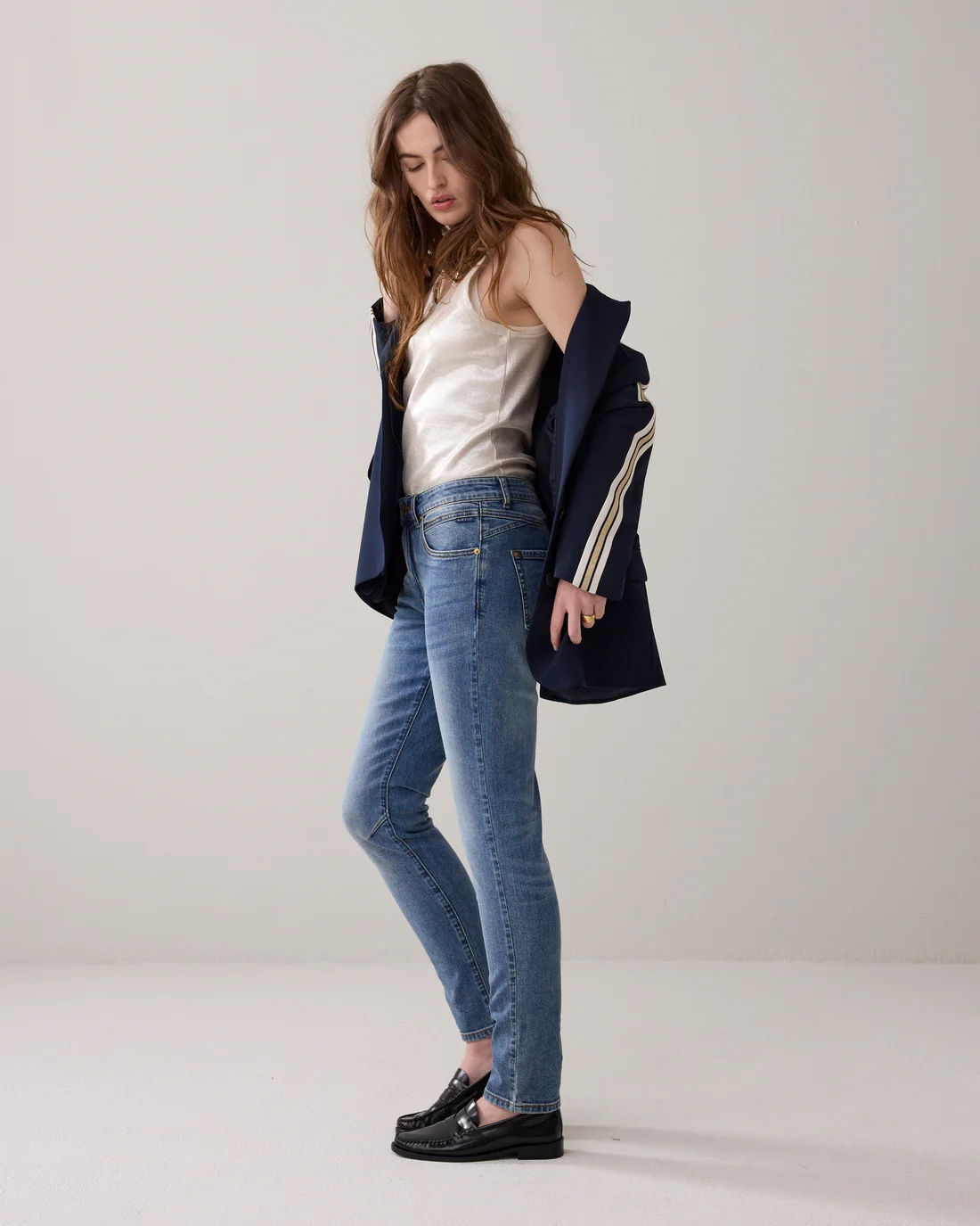 Tapered 5-pocket jeans van comfortstretch denim in een stoere stonewash. Dit Venus-model heeft een mid waist, opgerolde zoom en een gulp met rits.
